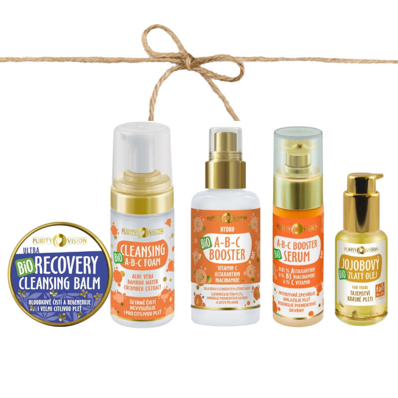 • Bio ABC Booster Day serum 30 ml — supplies the skin with a morning dose of active care that supports protection, hydration, and unification. Bio ABC Booster DAY serum is a light yet concentrated serum designed for daily use — ideal as a morning step after cleansing and toning. It intensively firms and rejuvenates the skin and reduces dark spots with A — 0.02% astaxanthin, 6% B3 — niacinamide, and 6% vitamin C.